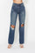These premium high-waisted straight leg jeans feature a contemporary distressed design with strategically placed knee cutouts that add an edgy, fashion-forward element. Crafted from high-quality stretch denim blend, they offer both comfort and durability while maintaining their shape throughout the day. The medium blue wash with natural fading creates an authentic vintage appeal, while the high-rise waistband provides a flattering silhouette that elongates the legs. The classic straight leg cut offers a timeless look that pairs effortlessly with any top, making these jeans a versatile wardrobe essential for creating both casual and elevated looks.