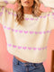 POL V-Neck Heart Pattern Checkered Sweater