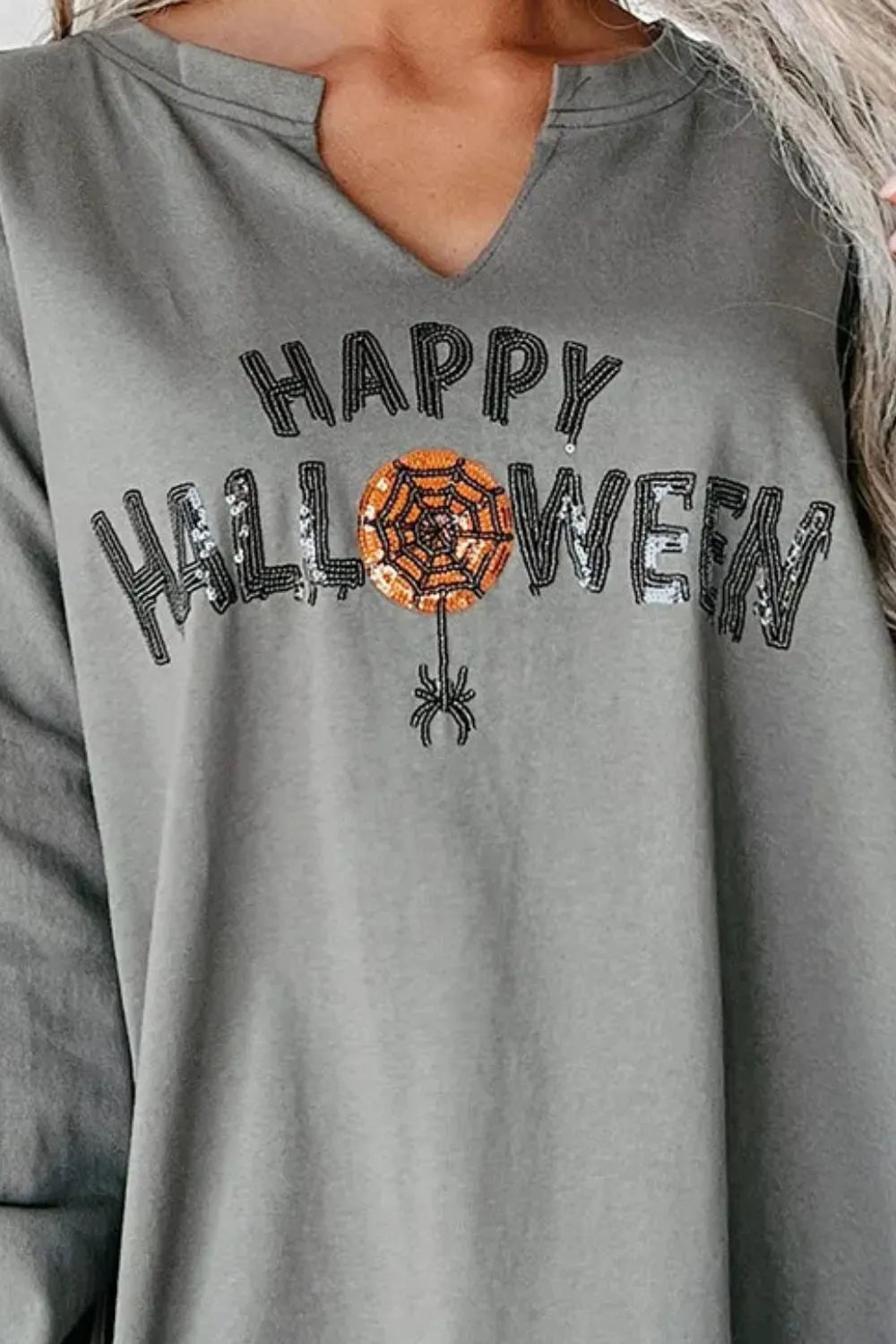 Sequin Letter Graphic Notched Long Sleeve Sweatshirt