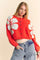 Davi & Dani Flower Contrast Round Neck Long Sleeve Cardigan