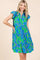 A leaf print ruffle sleeve tiered mini dress is a stylish and playful dress featuring a leaf print pattern. The ruffle sleeves add a touch of femininity and movement to the dress, while the tiered design creates a layered and textured look. The mini length falls above the knee, offering a fun and youthful vibe to the dress. The leaf print gives the dress a fresh and natural feel, perfect for spring and summer occasions. This type of dress is versatile and can be dressed up with heels for a night out or worn casually with sandals for a daytime look. It's a charming and trendy choice for a fashionable outfit.