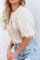 Rhinestone Pearl Detail Round Neck Puff Sleeve Top