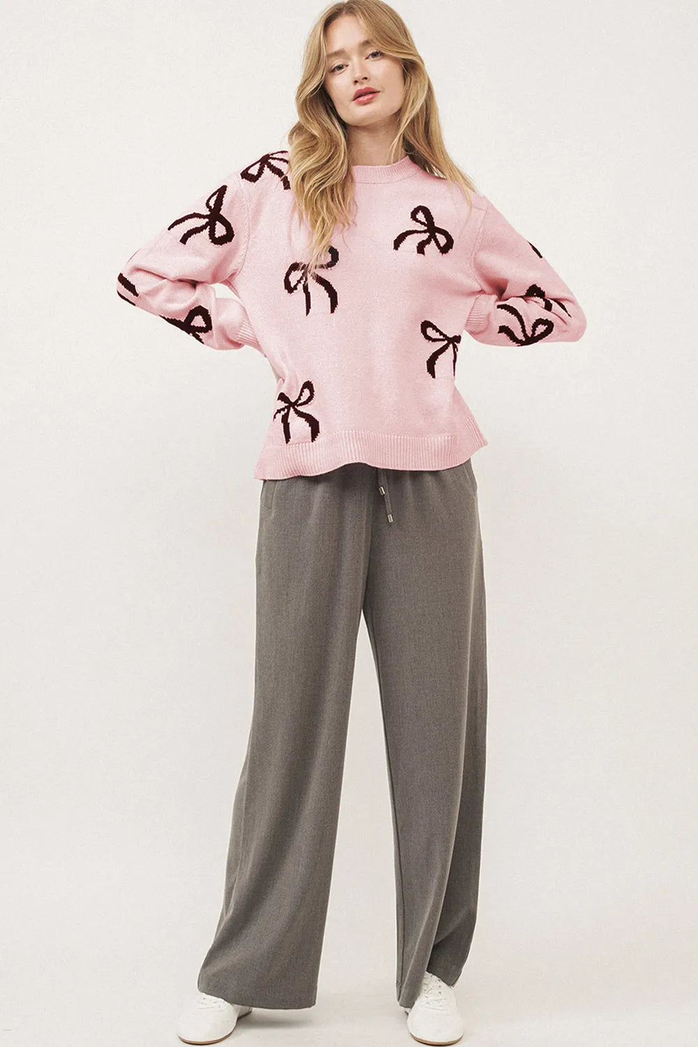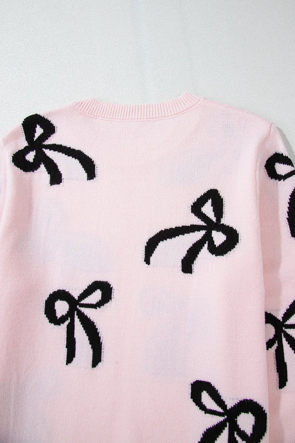 Bow Pattern Round Neck Loose Fit Sweater