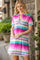 The Striped Short Sleeve Mini Tee Dress is a casual and comfortable choice for everyday wear. The striped pattern adds a classic touch to the dress, while the mini length gives it a fun and youthful vibe. This tee dress is perfect for a relaxed day out or can be dressed up with accessories for a laid-back yet stylish look.