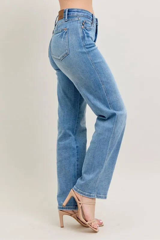 Judy Blue Full Size Tummy Control Vintage Wash Straight Jeans Plus Size