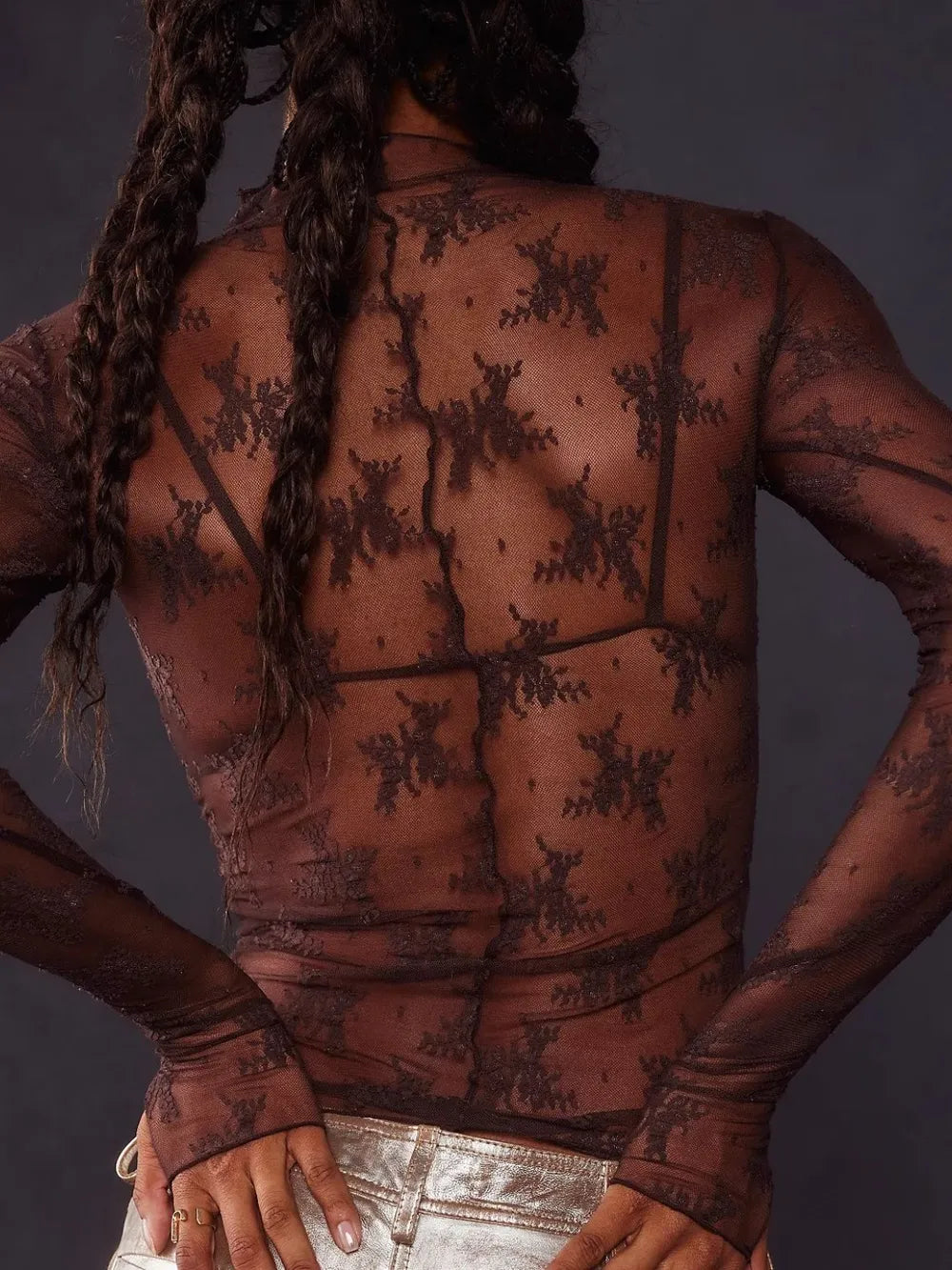 Lace Mock Neck Long Sleeve Blouse