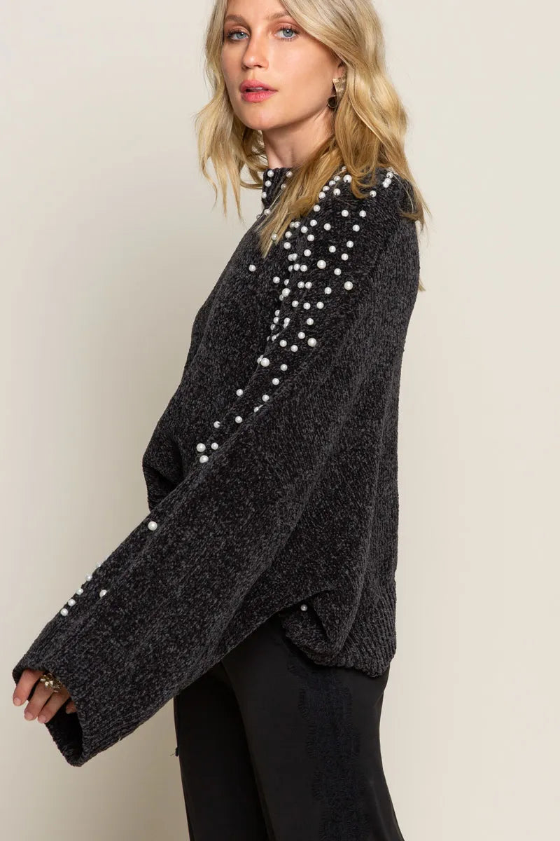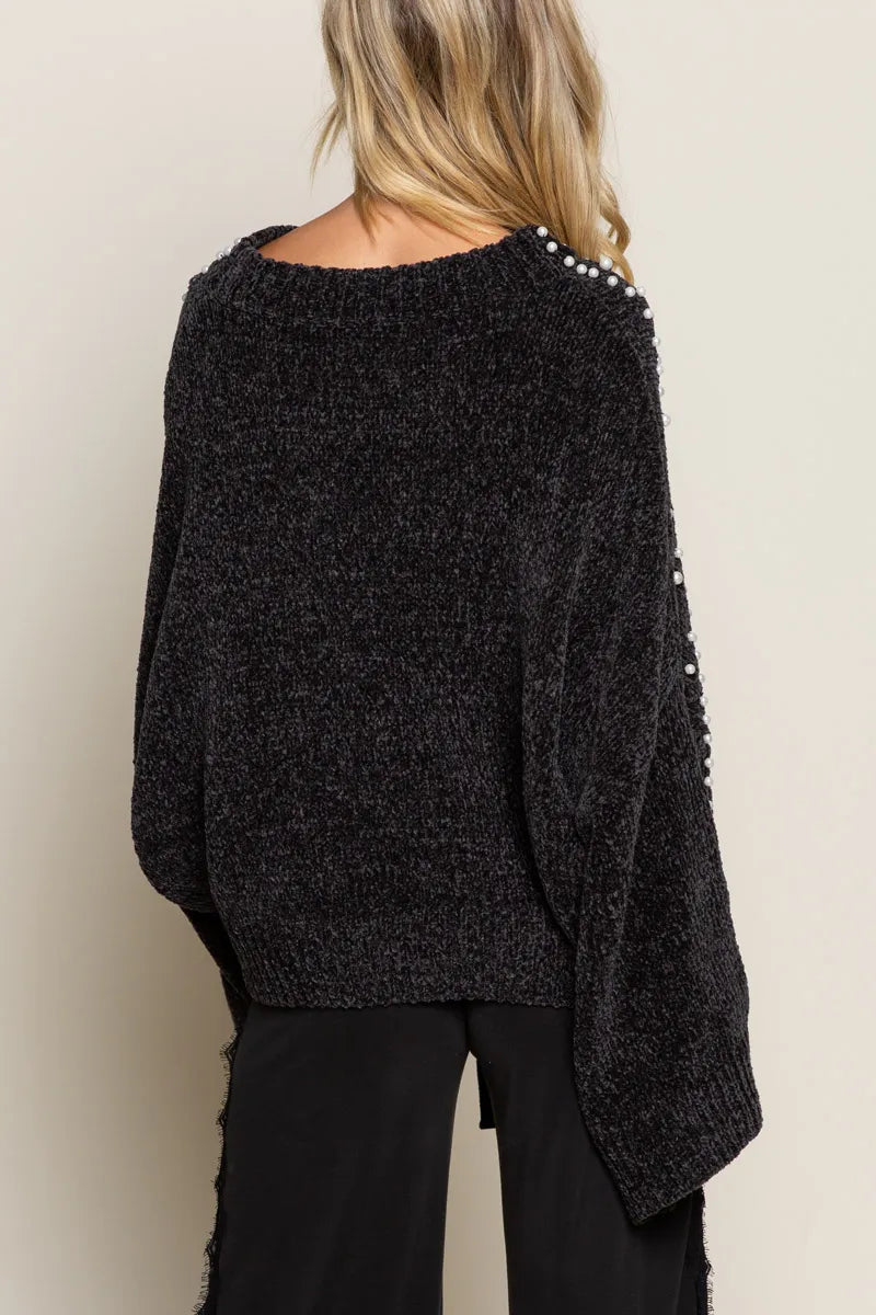 POL Oversized Pearl Embellished Sweater