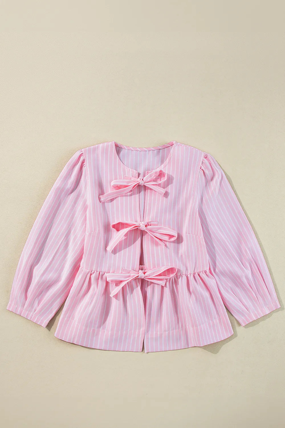 Tied Bow Striped Round Neck Blouse