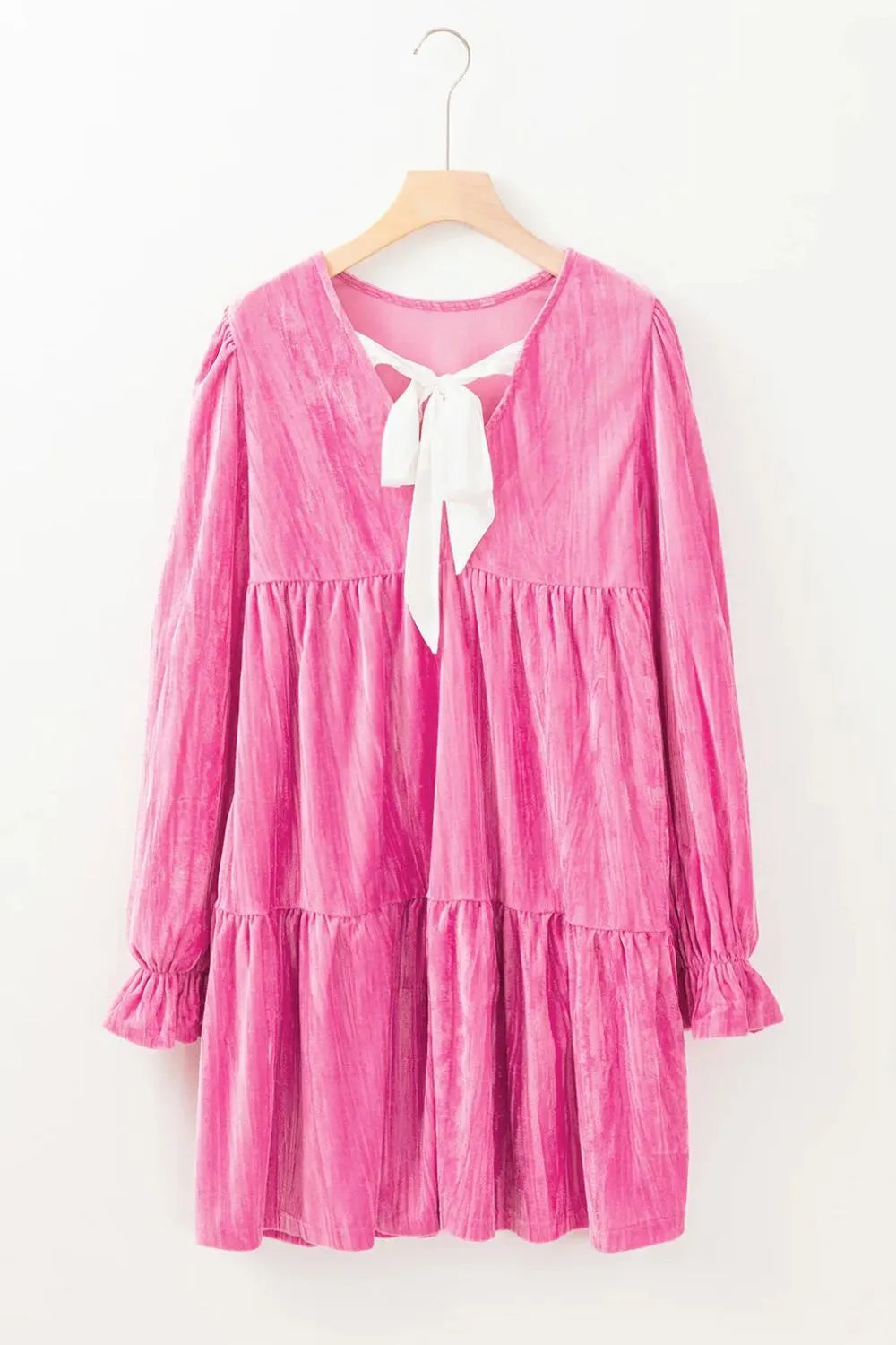 Tied Round Neck Flounce Sleeve Mini Dress
